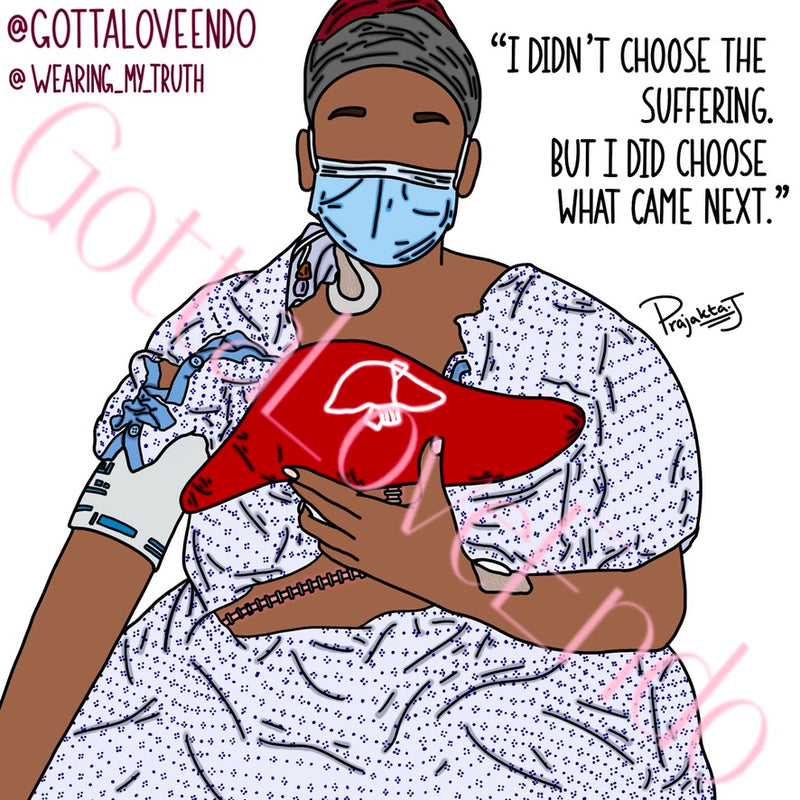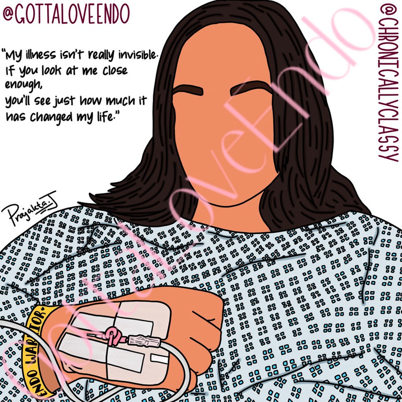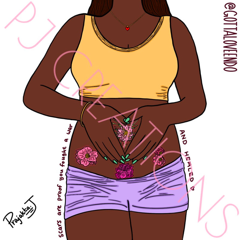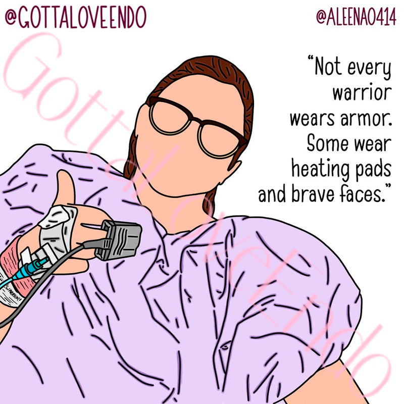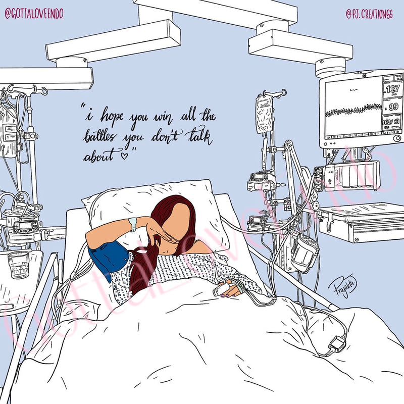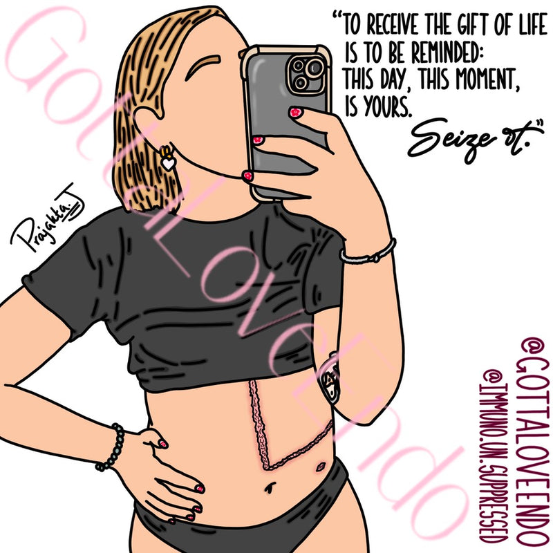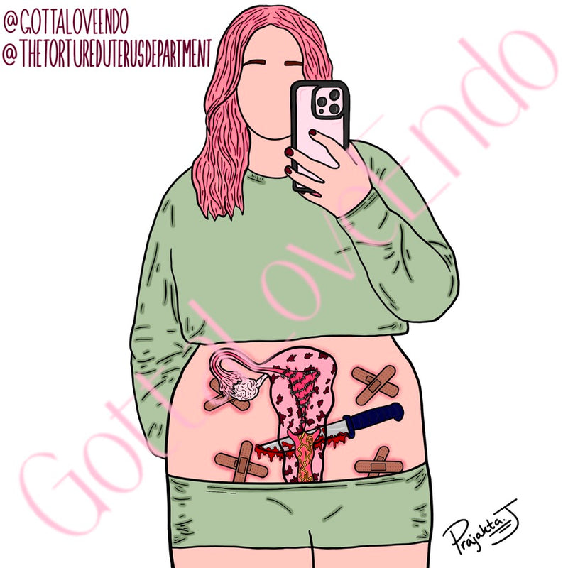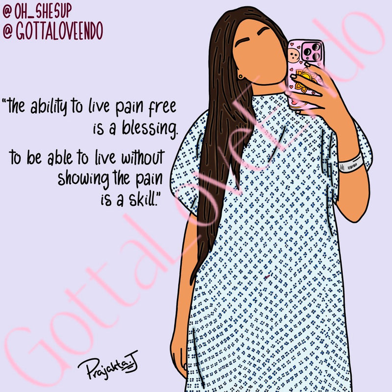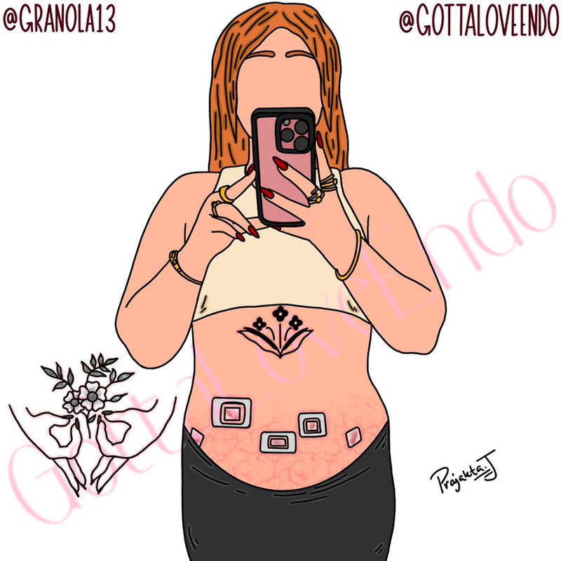 Created alongside the chronic illness community, these works transform lived experience into visual form — advocating for awareness while offering connection and recognition to those often unseen (see more on Instagram @GottaLoveEndo):