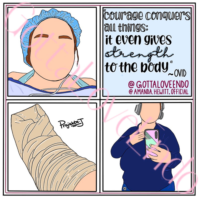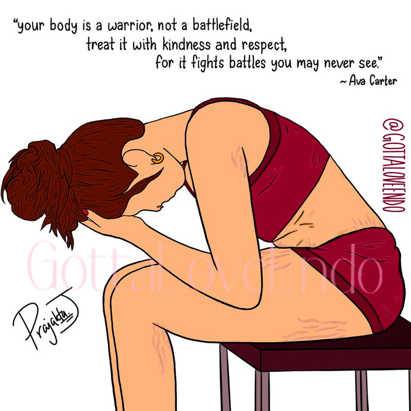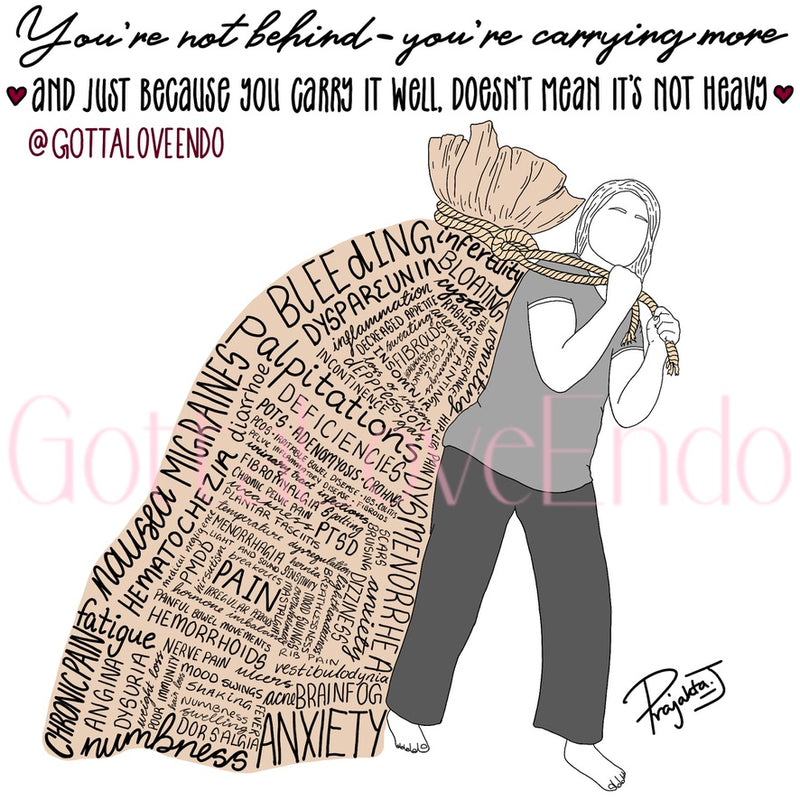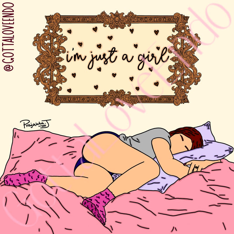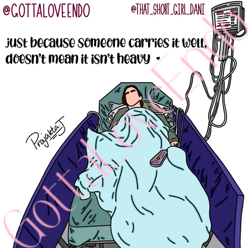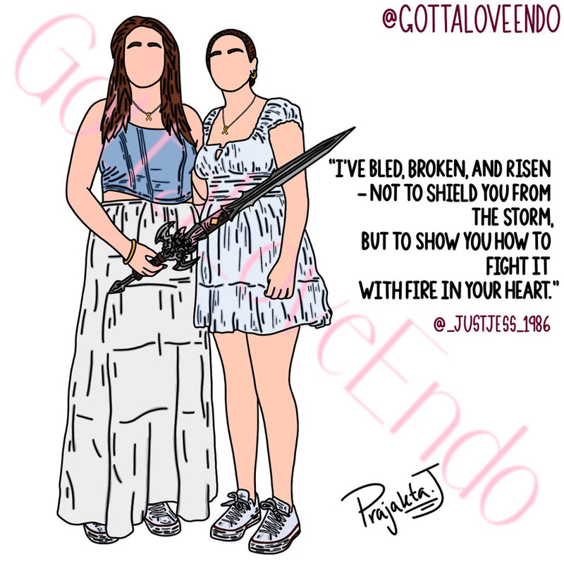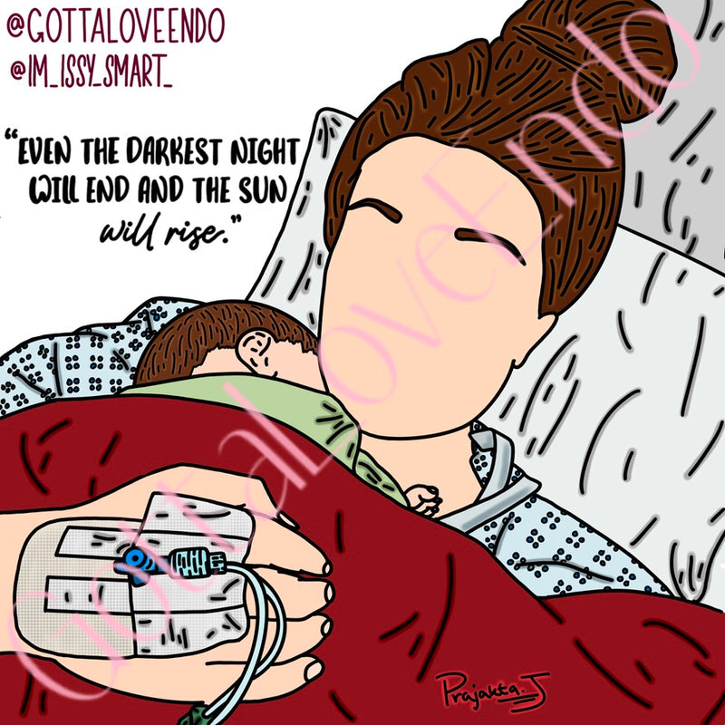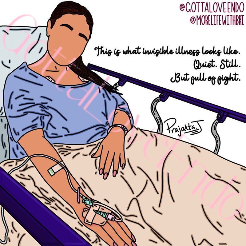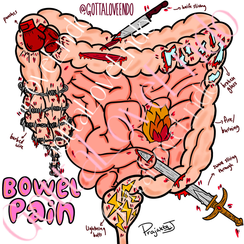 Created alongside the chronic illness community, these works transform lived experience into visual form — advocating for awareness while offering connection and recognition to those often unseen (see more on Instagram @GottaLoveEndo):