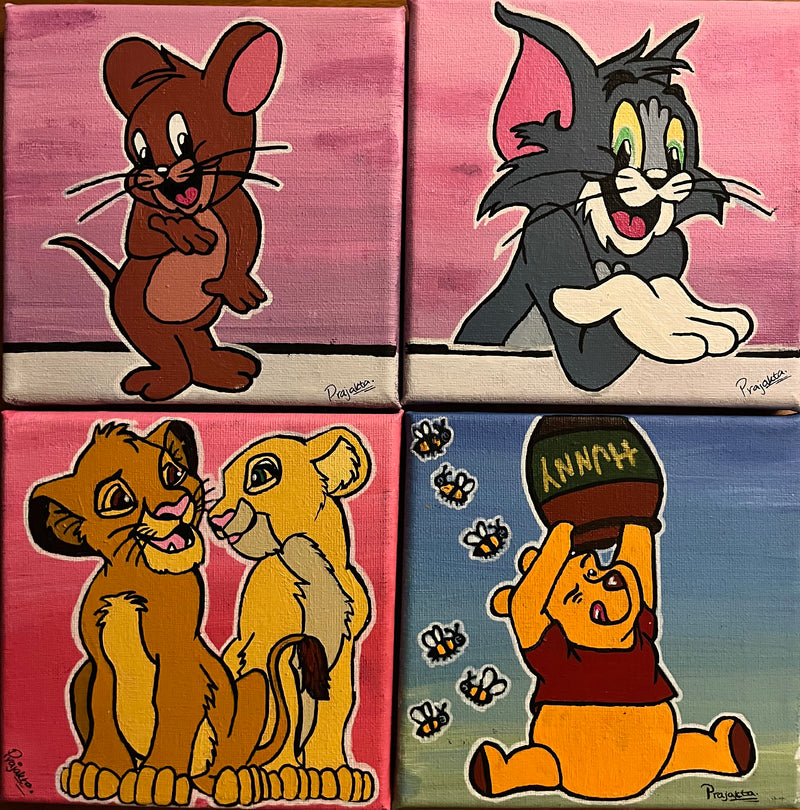 A collection of acrylic paintings of all sizes as well as intricate pen drawings!